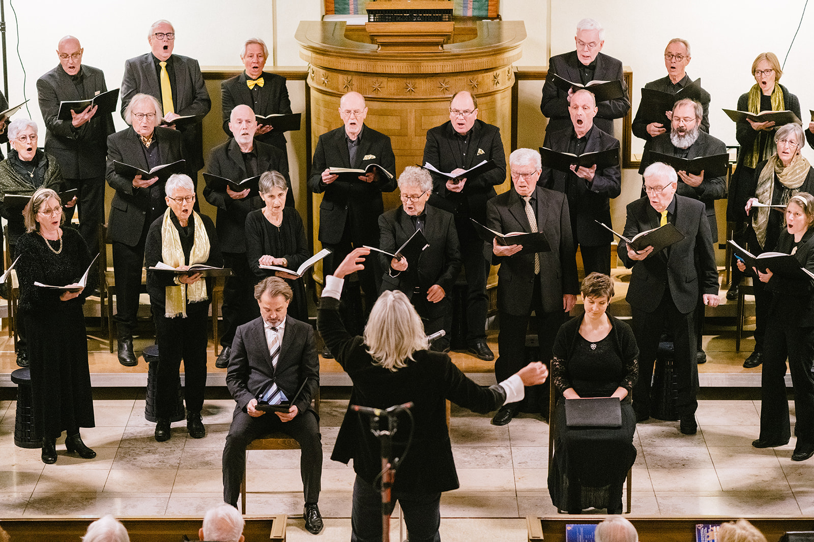 Was verwegen tönt, brachten wir am 5., 11. und 12. Nob. 2023 in Gossau SG, Teufen und Arbon zusammen: Wir stellten Werke von zwei höchst unterschiedlichen Komponisten einander gegenüber, die aber durch ihre geistlichen, lateinisch-liturgischen Texte miteinander verbunden sind, die Misa Tango des Argentiniers Martín Palmeri mit ihrer dramatisch-sinnlichen Tonsprache des Tangos im Gegensatz zu den eleganten Klängen der Wiener Klassik.